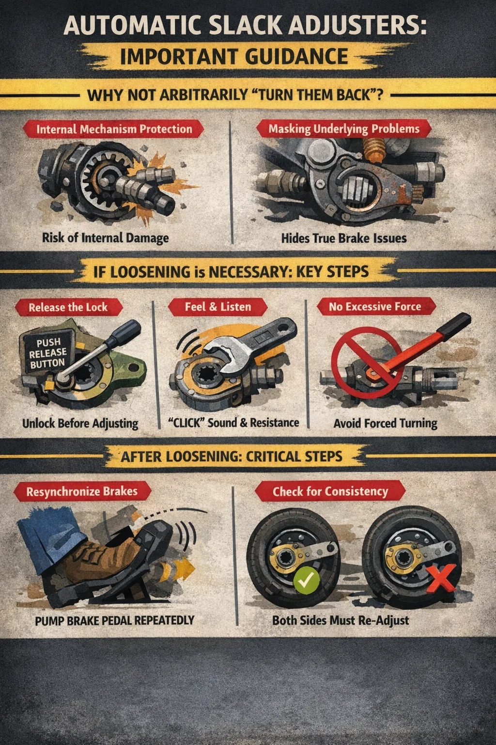 ↳ Маскировка основных проблем: если зазор неправильный, обычно это связано с износом или неисправностью тормозного насоса, распределительного вала или других компонентов трансмиссии. Ослабление его вручную устраняет только симптом, а не причину, а реальная угроза безопасности остается.