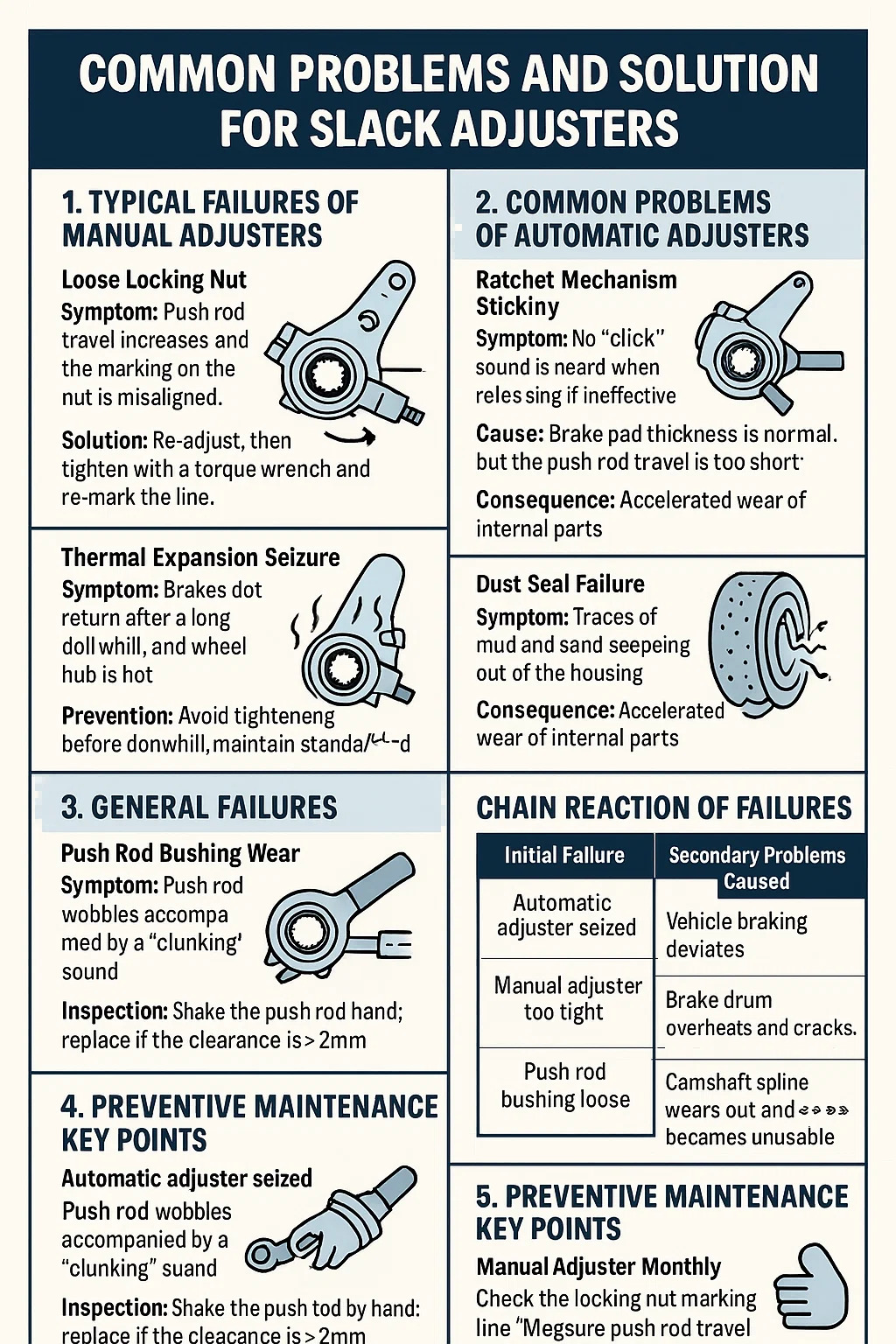 Признак: Толщина провисающей колодки нормальная, но ход толкателя слишком короткий (провисание).