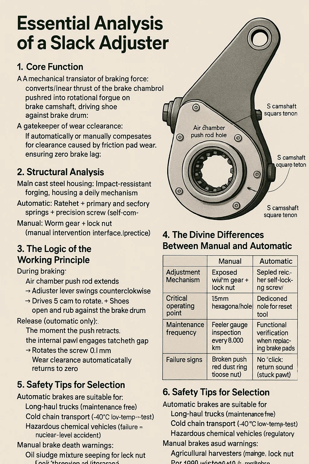 Механический преобразователь тормозного усилия: он преобразует линейное усилие толкателя тормозной камеры во вращательный момент на тормозном распределительном валу, прижимая колодку к тормозному барабану.